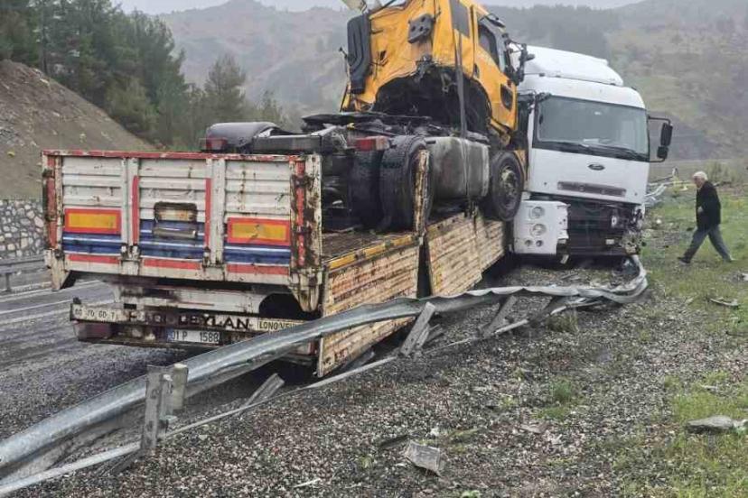 Kaza yapan tırı taşıyordu: O tır da kaza yaptı
