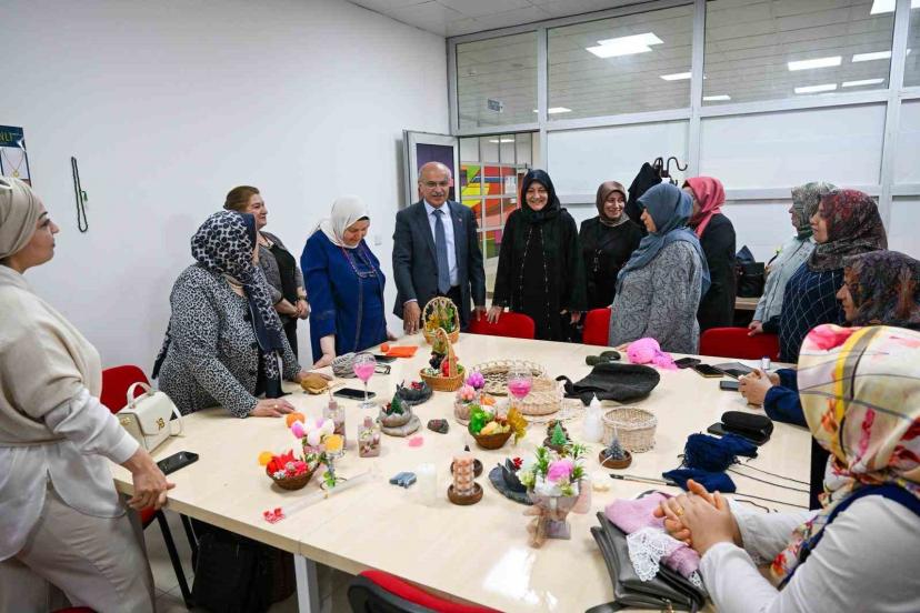 Kadınlara yönelik faaliyet gösteren giyim, mefruşat, el sanatları, saç bakım ve tasarım, biçki dikiş kurslarını ziyaret ederek, kursiyerlerle bir araya gelen Başkan Er, Büyükşehir Belediyesi olarak yaptıkları hizmetlerden insanların hoşlanmasının, fayda görmesinin kendilerini mutlu ettiğini belirtti.