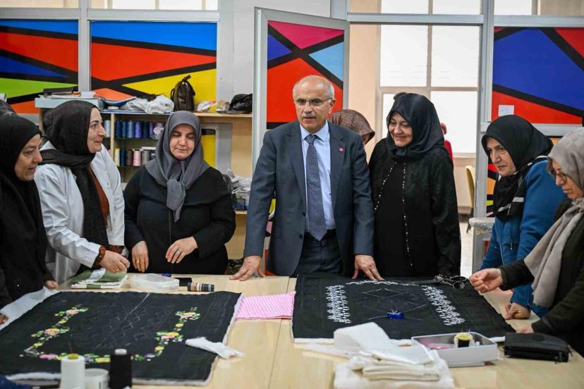 Malatya Büyükşehir Belediye Başkanı Sami Er, Büyükşehir Belediyesi’nin açtığı kurslarda üreten kadınların el emeği göz nuru ü...