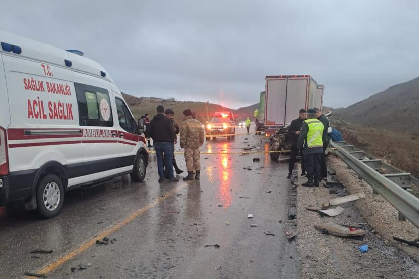 Açıklamada, Adıyaman istikametine seyir halinde bulunan bir otomobilin sürücüsünün direksiyon hâkimiyetini kaybetmesi sonucu karşı yönden gelen bir tır ile çarpıştığı belirtildi.