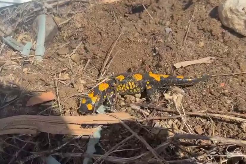Malatya'nın Doğanşehir ilçesinde Avrupa'nın nemli ormanlık bölgelerinde yaşayan ateş semenderi, cep telefonu kamerasıyla görüntülendi.