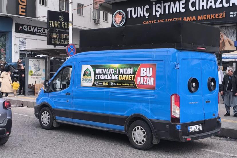 Peygamber Sevdalıları Vakfı tarafından Diyarbakır'da düzenlenecek "Vahdet ve Kurtuluş Önderimiz Hazreti Muhammed" temalı Mevlid-i Nebi etkinliği öncesinde, vatandaşları programa davet etmek amacıyla anons araçları kentin dört bir yanında gezmeye başladı.