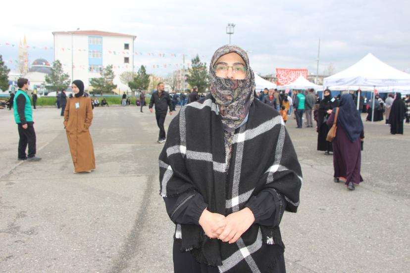 Tekerlekli sanadalye ile meydanda yerini alan 75 yaşındaki Huri Güneş, "Resulullah'ın mevlidi için gelinim ve eşimle birlikte geldik. Resulullah aşkı için alandayız. Yoğun bir kalabalık var. Peygamber Efendimiz'e olan aşkımız büyüktür. İnsanlar bu tür alanlara ne kadar rağbet ederse o kadar güzel olur." şeklinde konuştu.