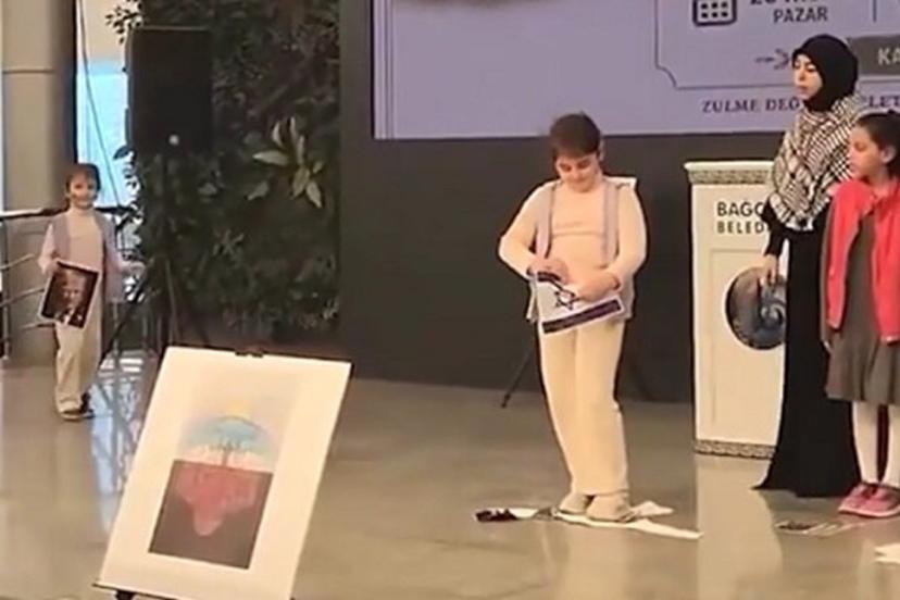 Türkiye’de düzenlenen anma töreninde çocukların öfkeli protestosu dikkat çekti. Katliamın sorumluları olarak gösterilen ABD Başkanı Donald Trump ve netanyahu’nun fotoğrafları ile ABD ve işgal rejimi bayrakları çocuklar tarafından yırtıldı.