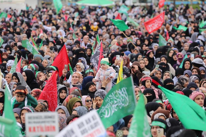 Ancak muvahhid olan Müslümanlar, hakiki anlamda iman edip çalışanlar, mallarını ve canlarını feda ettiler. Bunlar Kudüs ve Müslümanların izzeti olan Mescid-i Aksa için canlarını ve mallarını feda ettiler. Bu dönemde Allah uyanmamızı istiyor. Allah'ın vermiş olduğu o şerefi istiyor ki bizler tekrardan o şerefe sahib olalım. Bundan dolayıdır ki bugün Müslümanlar başkaldırmışlardır. Aslanlar ve erkek olanlar meydanlara çıkmışlardır. Bugün dünyayı Amerika'ya, israile ve İngiltere'ye dar etmişlerdir."