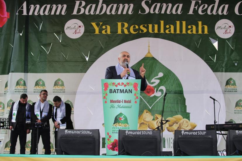Peygamber Sevdalıları Vakfı tarafından Hazreti Muhammed'i (sallallahu aleyhi vesellem) anma ve sünnetini yaşama amacıyla Batman'da otogar yanı Mevlid Alanı'nda Mevlid-i Nebi mitingi düzenlendi.