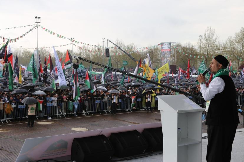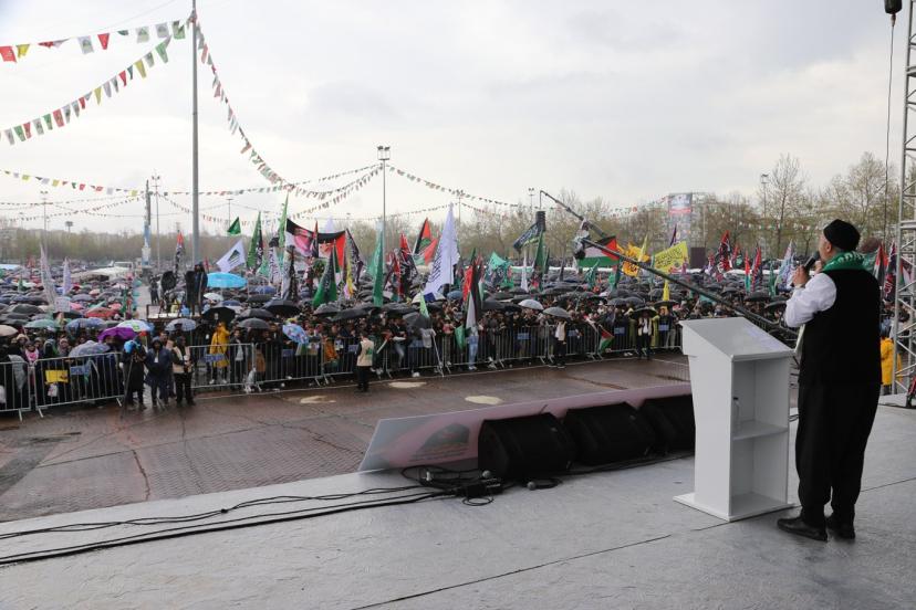 Mitingde bir konuşma yapan İTTİHADUL ULEMA Sözcüsü Molla Remzi Uçar, alandaki toplanışın ABD ve işgalci siyonistlere bir cevap olduğunu vurguladı.