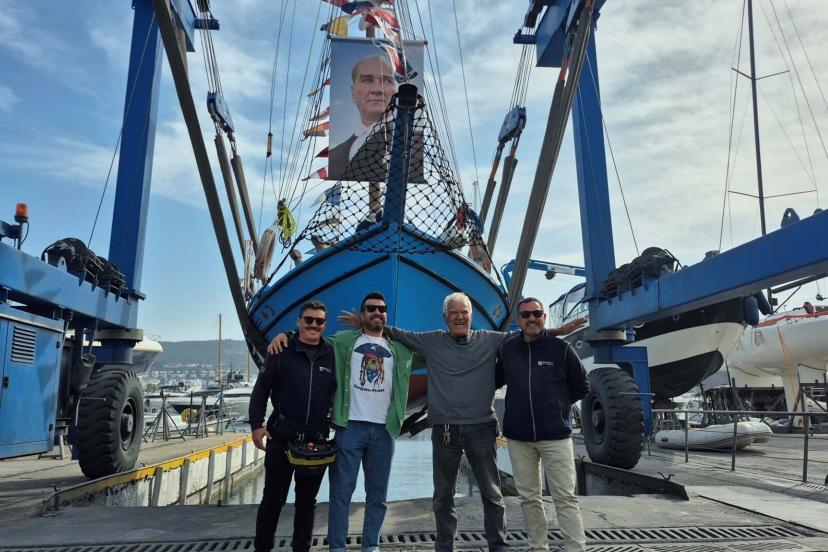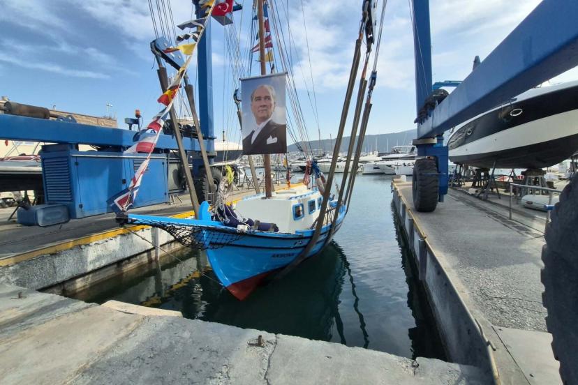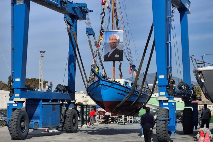 MUĞLA’nın Bodrum ilçesinde 'Aksona Mehmet' adıyla tanınan son sünger avcısı Mehmet Baş (76), 64 yıllık emektar teknesi 'Aksona'yı bakım çalışmalarının ardından törenle denize indirdi.