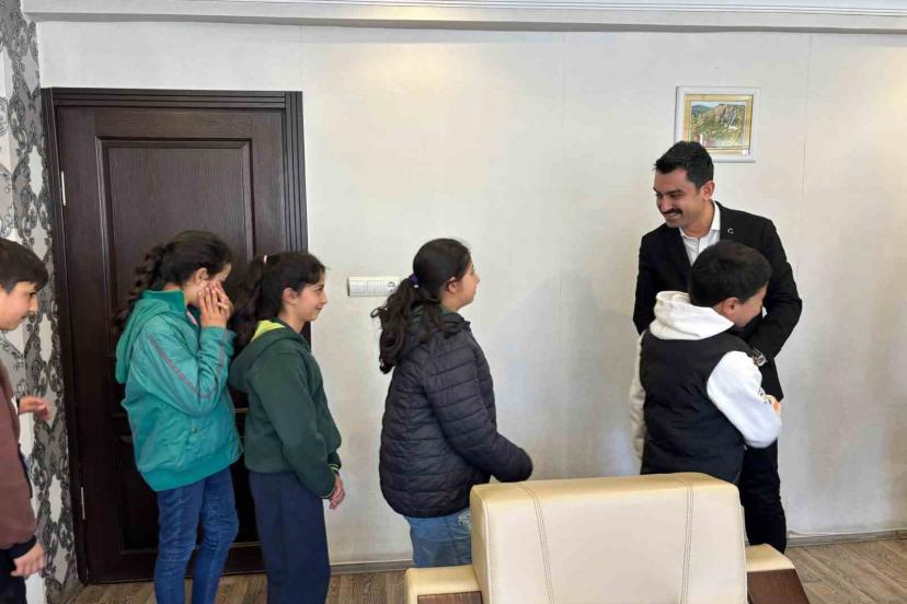 Susuz Kaymakamı Muhammed Emin Tutal, İncesu köyünden gelen öğrencileri ve köy muhtarı Abdülkadir Eker’i makamında ağırladı.