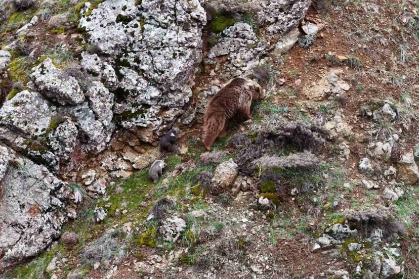 Tunceli’de dron ile görüntülenen ayılar ve yavruları adeta belgeselleri aratmadı. Bir aynının yavrularını emzirmesi ve kayalılardan çıkmasına yardımcı olması net şekilde kamera yansıdı.