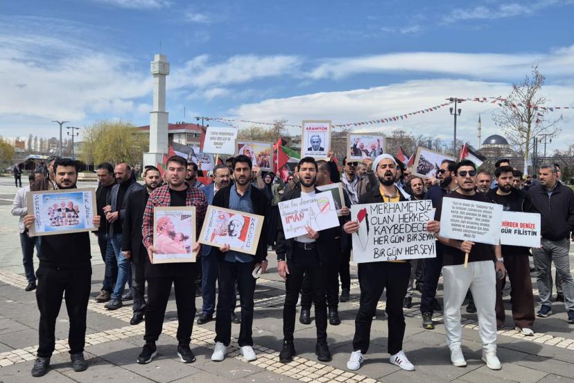 İran’a yönelik saldırıların bölgeyi tamamen savaşa çekme gayreti olduğunu belirten Akkaya, “Buradan bir kez daha haykırıyoruz: Masum sivil Müslümanlara ve İran devletinin egemenliğine yönelik bu bombardımanlar, bölgeyi topyekûn bir ateş çemberine çekme gayretidir. Minab’da şehit edilen o masum kız çocuklarının kanı, zalimlerin yakasına yapışacak ve elbet bir gün adalet yerini bulacaktır. Savunmasız sivillere yönelen her bomba, aslında tüm insanlığın vicdanına atılmaktadır. Bizler üniversite gençliği olarak; adaletten, haktan ve mazlumdan yana tavır almayı bir sorumluluk olarak görüyoruz. İnancımız bize şunu öğretmektedir: Bir insanın hayatı, bütün insanlığın hayatı gibidir. Bu yüzden Filistin’de, İran’da, Lübnan’da veya dünyanın herhangi bir yerinde akan her damla kan, bizim yüreğimizi yaralamaktadır.” şeklinde konuştu.