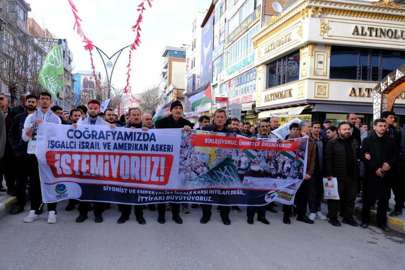 Ümmet coğrafyasının, siyonist rejim ve işbirlikçisi ABD tarafından ateş çemberine alındığını söyleyen Çevik, “Ümmet coğrafyası ateş çemberinde,  Çocuklar, kadınlar ve masumlar gözlerimizin önünde her gün katlediliyor. Bizlere evlerimizde oturmak yakışmaz, işte bugün zalime karşı mazlum kardeşlerimizin yanında olduğumuzu haykırmak ve tüm dünyada bu zalimleri lanetlemek ve zulmün durdurulmasını da bizleri yönetenlerden istemek için bir araya geldik. İşgalci İsrail ile işbirlikçisi ABD’nin yıllardır uyguladığı 'böl, parçala, yut' senaryolarına karşı çıkmak, Gazze’ye, Lübnan’a ve son olarak komşumuz İran İslam Cumhuriyetine yapılan saldırıları ve katliamları lanetlemek için buradayız. Bizler, bölgemizde yürütülen kirli senaryoları, zulmü ve katliamları lanetliyoruz. Bölge halklarının iradesini yok sayan, sınırları kanla yeniden çizmeyi hedefleyen hiçbir askeri girişimi, işgali ya da saldırıyı kabul etmiyoruz. Kendi topraklarımızda hem işgalci İsrail’i hem de bölgeyi kaos bataklığına çeviren Amerikan askeri varlığını reddediyoruz. ABD ve İsrail karşısında direniş dışında bir tercihin olmadığı yaşanan süreçle ortaya çıkmıştır. Teslimiyetçi zihniyetin sonu kardeş ve dost ülkelerde katliam ve soykırım yapılırken, kendisine ne zarar verirse versin ABD üslerini ve radarlarını savunmaya varmıştır. Bugün islam ülkelerinin yöneticileri, ülkelerinin geleceğini ve tam bağımsızlığını düşünüyorlar ise ABD ve İsrail'e karşı Yahya Sinvarın başlattığı direniş destanına destek vermelidirler. Sessizlik, sonu olamayan bir çukurdur. İnsanlığın ortak düşmanı olan ABD ve İsrail şer ittifakı, biz kendimizle ilgili tüm değerleri bir kenara koymadan, onların kulu, kölesi ve gönüllü askerî olmadan bizlerden razı olmayacaklardır.” dedi.