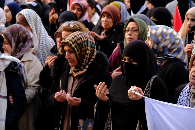 Ellerinde dövizler taşıyan ve sloganlar atan kalabalık, Filistin halkına destek mesajları verirken “Direnişe selam” sloganları attı.