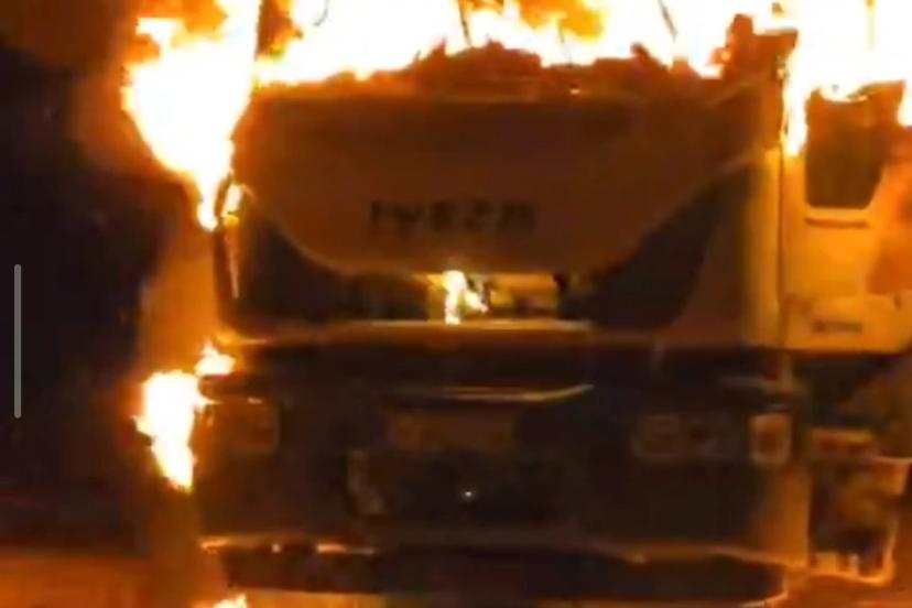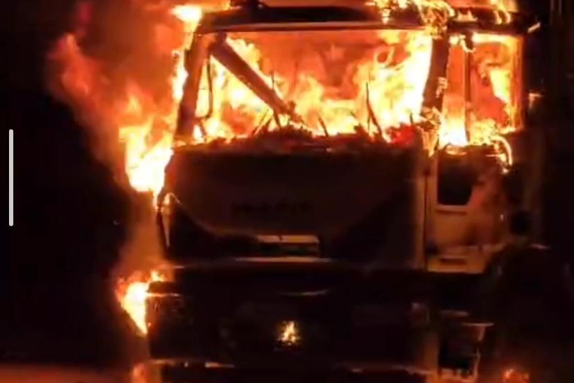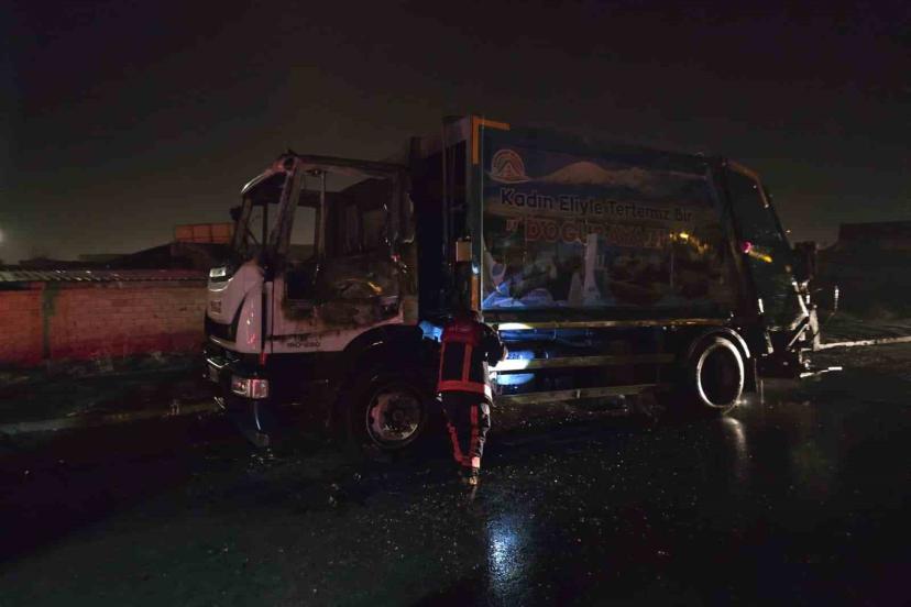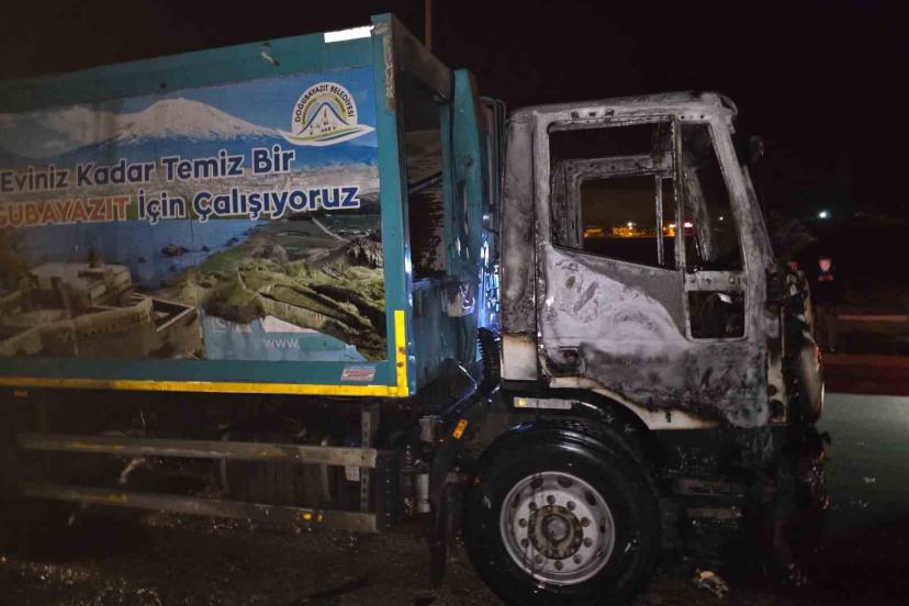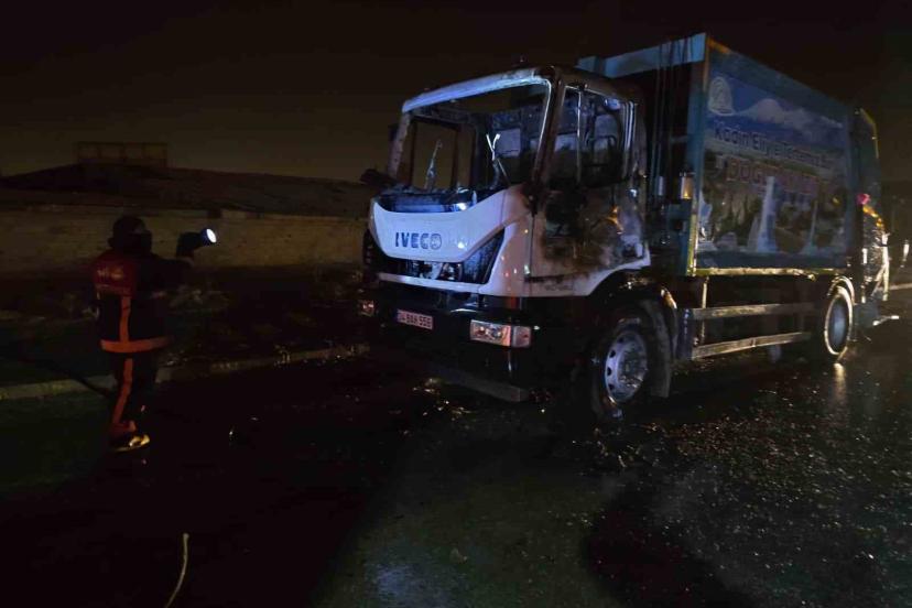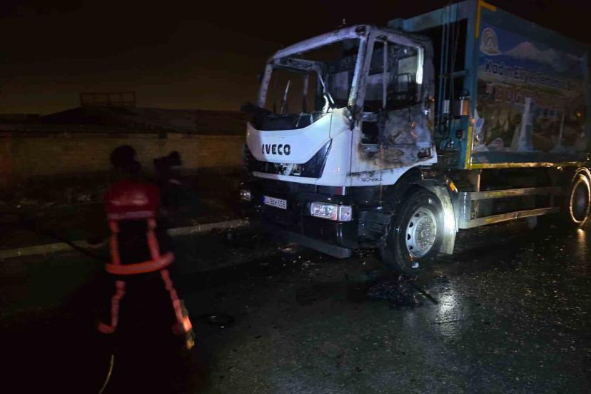 Van’da çöp kamyonu alev alev yandı