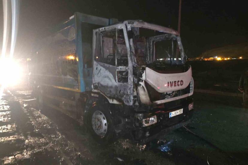 Van’ın Tuşba ilçesine seyir halindeki belediyeye ait çöp kamyonu seyir halindeyken alev alev yandı.