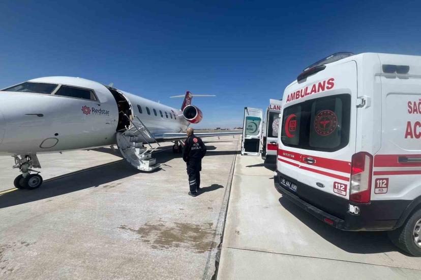 Talebin uygun görülmesi üzerine Ankara’dan havalanan ambulans uçak, Van Ferit Melen Havalimanı’na iniş yaptı. Hastaneden ambulanslarla havalimanına getirilen hastalar, uçaktaki sağlık ekipleri tarafından teslim alındı.