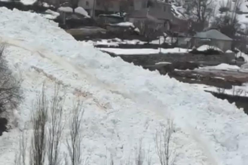 Hakkari’nin Yüksekova ilçesine bağlı Yeşiltaş köyünde yerleşim yerlerine yakın bir noktaya düşen çığ, korkuya neden oldu.