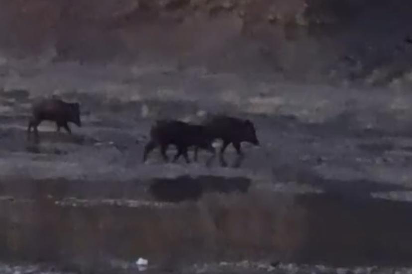 HAKKARİ (İHA) – Hakkari’nin Yüksekova ilçesinde sürü halinde dolaşan yaban domuzları, cep telefonu kamerasıyla kayıt altına alındı.
