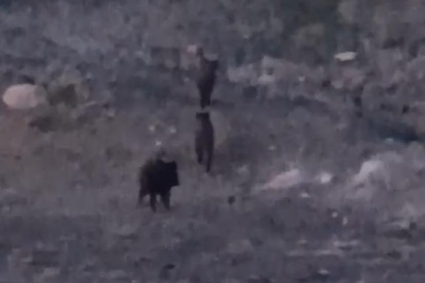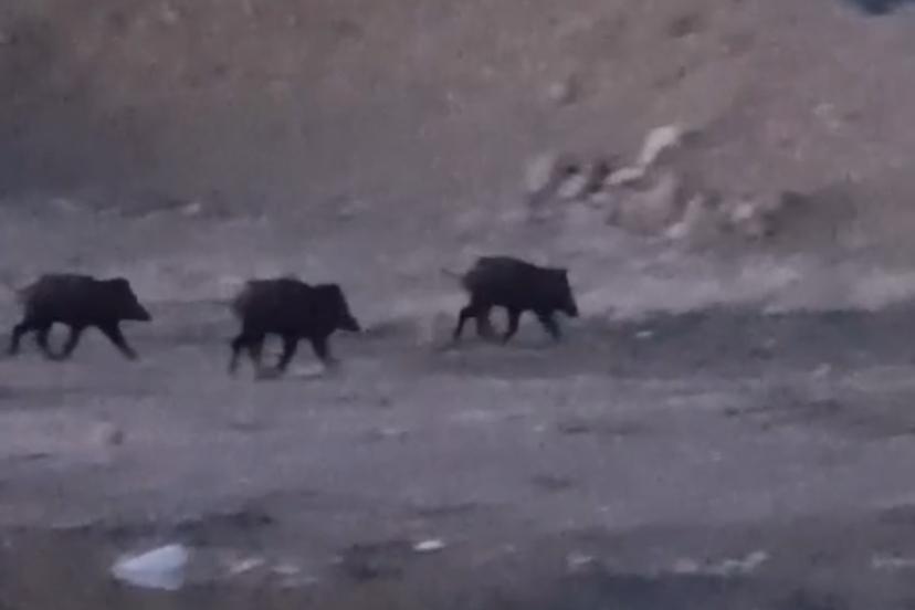Hakkari’nin Yüksekova ilçesinde sürü halinde dolaşan yaban domuzları, cep telefonu kamerasıyla kayıt altına alındı.