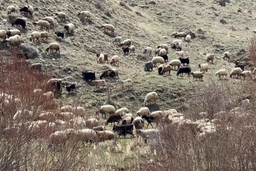 Hakkari’nin Yüksekova ilçesinde kış boyunca ağıllarda beslenen küçükbaş hayvanlar, havaların ısınması ve karların erimesiyle birlikte meralara salınmaya başlandı.