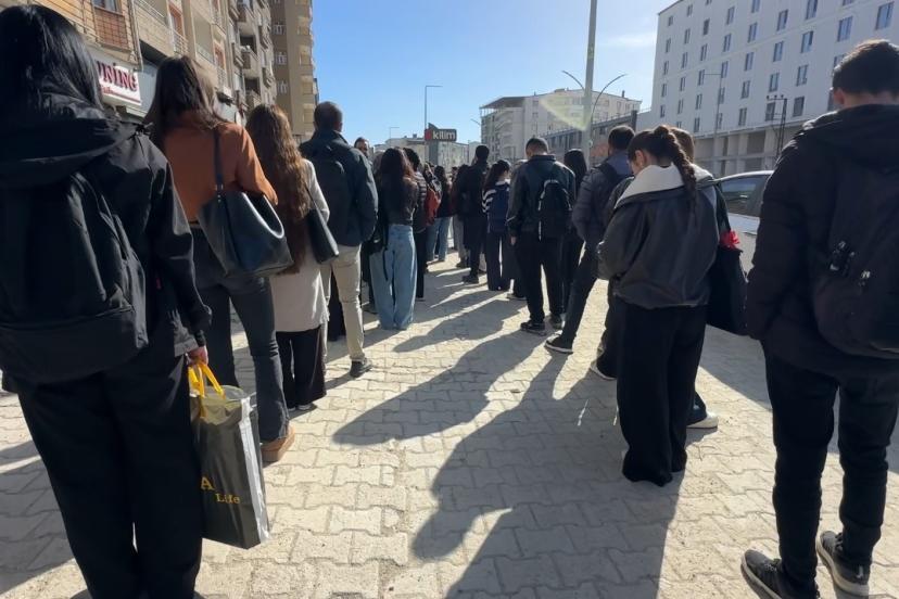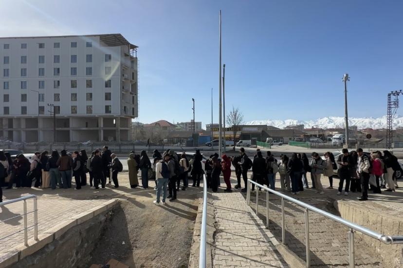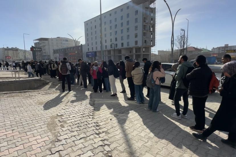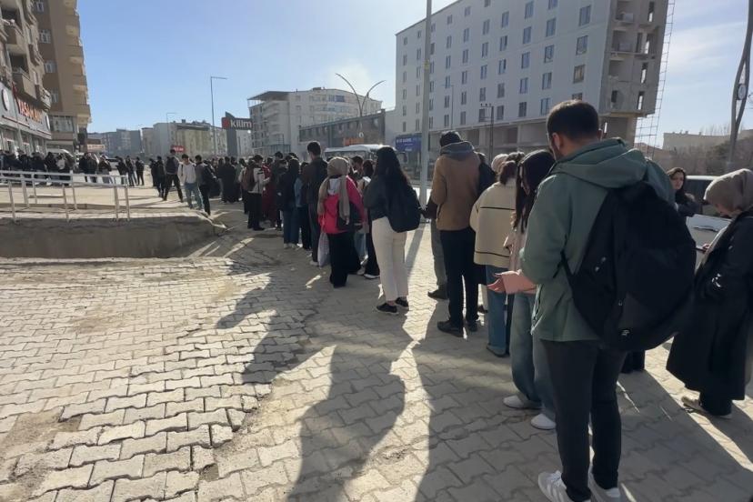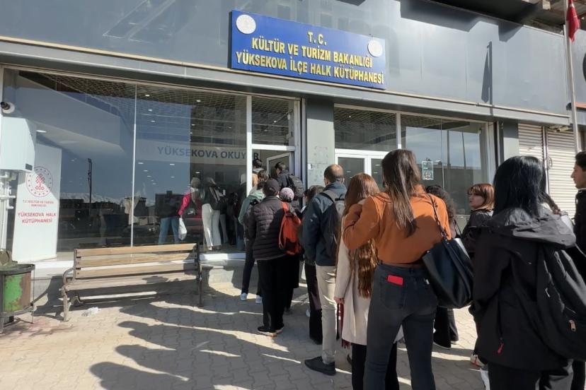 Hakkari’nin Yüksekova ilçesinde öğrenciler deprem riski nedeniyle yıkılıp kiralık bir binada hizmet veren kütüphanenin önünde sabahın ilk ışıklarıyla uzun kuyruklar oluşturdu.